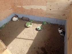 新しい小屋に移されたうさぎは,「ここはどこだ? 落ち着かないぞ…」ととても不安になっている感じです。しばらくはそっとしておいてやりたいものです。きっとそのうちに,トンネル穴を掘り始めるにちがいありません。(*^。^*)