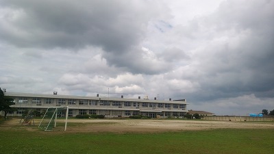 校庭から空を見ると、青空も一部に見えますが、黒い雲も強い風にながれていきます。台風8号が沖縄から、九州、西日本から明日の未明には関東付近を通過しそうです。