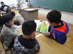 朝は、6年生が荷物の片づけを手伝ってます。片付けが終われば、本の読み聞かせ。楽しい1日の始まりです。