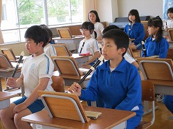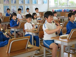 3年生はリコーダーの講師をお迎えして勉強しました。持ち方や音の出し方の基本からスタートして、なんと1時間終わるころには「たこたこあがれ」と「メリーさんのひつじ」が吹けるようになりました。今後が楽しみですね。ぜひ、お家でも聴いてあげてください。