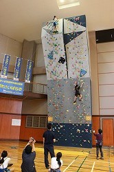 6年生は午後からクライミング体験で鉾田総合公園体育館に行きました。早々に、女子のK.KさんとI.Kさんが最高地点まで到達したようです。後半は男子が挑戦するようです。頂上まで行けたかな?
