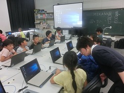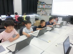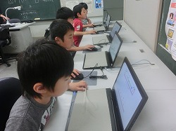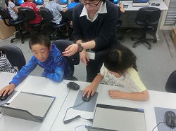 2回目のO先生のパソコンの授業です。今回は2年生がはじめてパソコンの授業をしました。マウスを使ってゲーム形式で楽しく活動しました。「クリック」や「ドラック」ができるようになりました。最後は、パソコンでお絵かきしました。みんなとても真剣な表情でした。