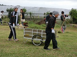 9月2日(土)、台風の影響も心配されましたが、予定通り奉仕作業を行うことができました。保護者の皆さまの力で、夏休みの間に伸びきった草が短時間でなくなりました。奉仕作業恒例となりました、「ニコニコ植木」は、前会長Yさん作です。学校がきれいになって、喜んでいるようですね。