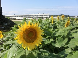 予行練習後に撮影しました。午前中の豪雨が嘘のような青空です。今日の一部始終を遅咲きのヒマワリが見守っていました。運動会には、満開のヒマワリもお楽しみに。