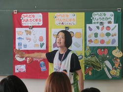 給食の後は、手洗いと歯磨きについて、保健センターの保健師さん、栄養士さん、歯科衛生士さんからお話をいただきました。仕上げみがきは、まだ続けたほうがいいそうです。