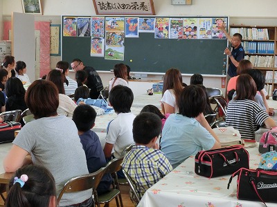 いよいよ夏休み。夏休みの絵の宿題対策というわけで、「ポスターを描こう!」と家庭教育学級を開きました。親子で80人ほどが希望したので、会場の図書室はいっぱいです。