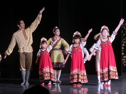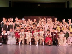公演では、ダンサーの練習や基本の動き等も教えていただき、児童・教師も飛び入りで参加しました。「くるみ割り人形」にも事前に抽選で選ばれた児童が衣装を着て参加しました。当日のわずかな練習時間でしたが、みんな立派に演技できました。