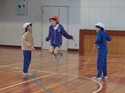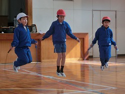 16日は、組み合わせとびの大会を行いました。 参加者は1年生から6年生までの19組でした。 体育の授業や休み時間に友達と協力して考えて練習した技を披露しました。 友達と息を合わせて行う組み合わせとびは、いろいろな面で良い効果が表れます。