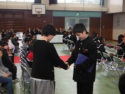 今年は、卒業生が証書をもらった後に今後の意気込み(抱負)をステージ上からを宣言しました。みんな立派にできました。その後に手紙を親に渡しました。手紙には、なんて書かれていたんでしょうね。