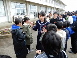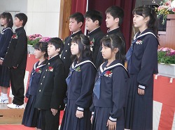 朝の嵐が嘘のように、式の始まるころには晴れ間も見えてきました。これまで頑張ってきた6年生にお天と様も味方してくれました。