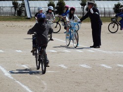 3年生は、この学習の後、地区内を乗ることができます。しかし、3・4年生の乗り方を見ていたら、ふらついたり、停止線で止まれなかったり、右足(道路側)をつく子が多くいました。