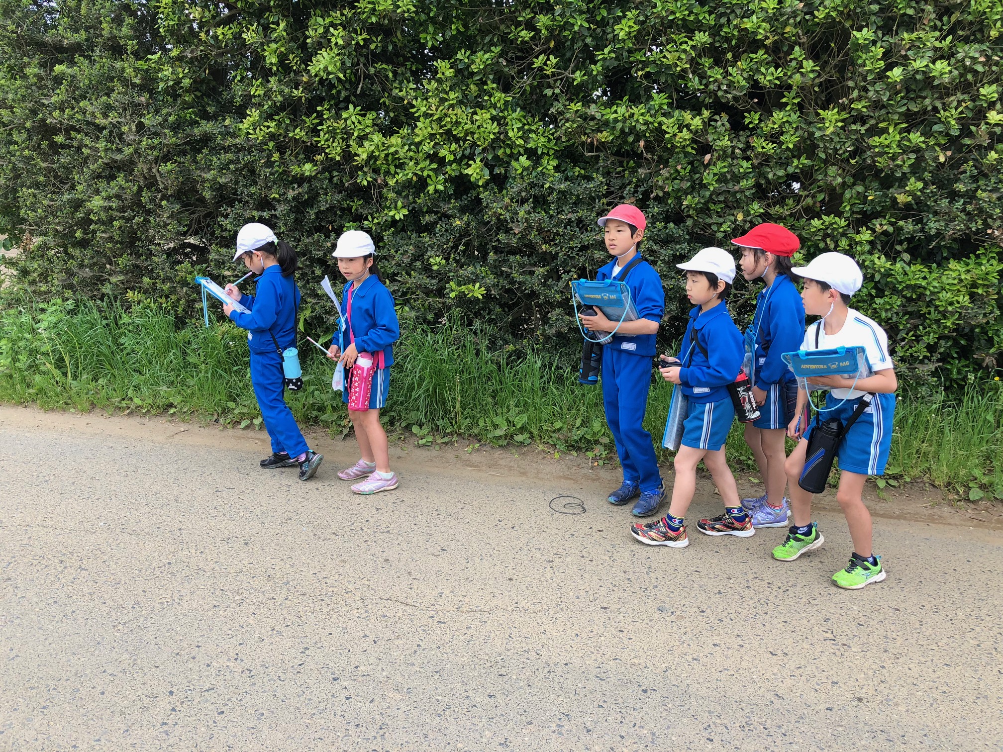 3年生が社会の学習で、「まちたんけん」を行いました。3グループに分かれて探検しました。常盤グループ、樅山グループ 、勝下グループです。見慣れた風景でも、社会科の勉強なので、標識の意味を考えたり防火貯水槽に気づいたり、ハウスで何を作っているのか等、注意深く見学してきました。班長を中心に道に迷わないように、集合時刻に遅れにようになど相談している姿が微笑ましかったです。