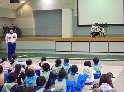 4年生が校外学習に行ってきました。午前中は、ひたちなか市の交通公園です。自転車の乗り方について、詳しく説明を聞きました。手信号についても練習し、実際に公園内のコースを走ってみました。人形を使った交通事故の様子も見学しました。人形が車にひかれるときには、「キャー」「ワー」とびっくりしていました。交差点での確認が大切なことを改めて実感したようです。