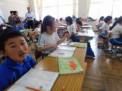 授業中でも、子供たちはお客さんにあいさつをしていました。知り合いを見つけては、手を振っている児童もいました。