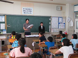 今日から教育実習が始まりました。2人とも本校の卒業生です。4年生担当がH・Aさん(大学4年生で4週間)、5年生担当がO・Tさん(大学3年生で2週間)。若い先生は、子どもたちにも人気です。学校にも活気が出ます。この実習で多くのことを学び、子供をさらに好きになって立派な先生になってほしいです。がんばれ、実習生!