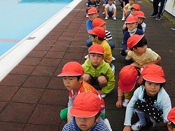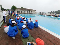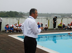 本日の児童朝会は、児童会と体育委員会の共催による「プール開き」を行いました。肌寒い中でしたが、児童による水泳学習の注意事項や教頭先生の話を聞きました。水温が温まればプールに入れますので、水着の用意をお願いします。