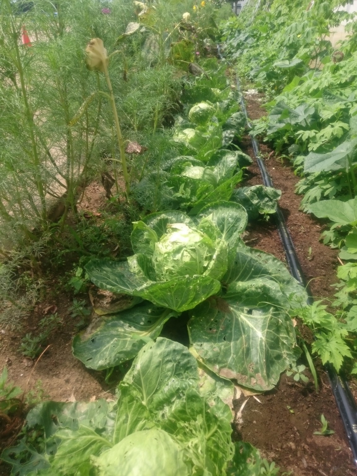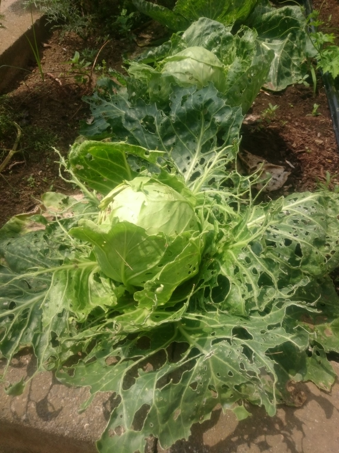 花だんには、ウサギたちのためのキャベツも育っています!が…、あまりにも美味しいようで…キャベツの葉っぱがレースのようになってしまっています(>_<)誰のしわざでしょうか?