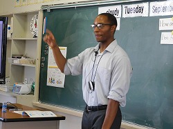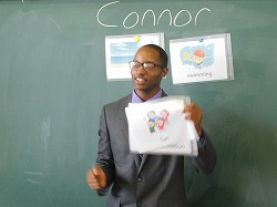 9月から旭南小の英語の授業を担当することとなったコナー先生です。アメリカのニューヨーク州出身です。日本で英語の授業をしたのは、旭南小が最初です。1回目の授業(上の写真)は緊張していたようですが、今日は4回目でだいぶ慣れてきたようです。とても礼儀正しい好青年です。見かけたら、「ハロー」って声をかけてあげてください。