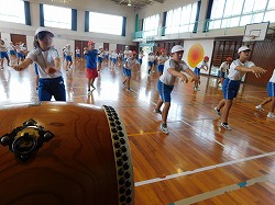 4・5・6年生は、今年も「ソーラン節」をやります。6年生が新たな振付や体系を考えて後輩たちに教えながら練習を進めています。今日は、体育館での練習を終えて始めて外でも練習しました。ソーラン節は動きが激しいので、みんな筋肉痛のようです。体調を崩さないように栄養の補給と十分な睡眠に心がけてほしいです。