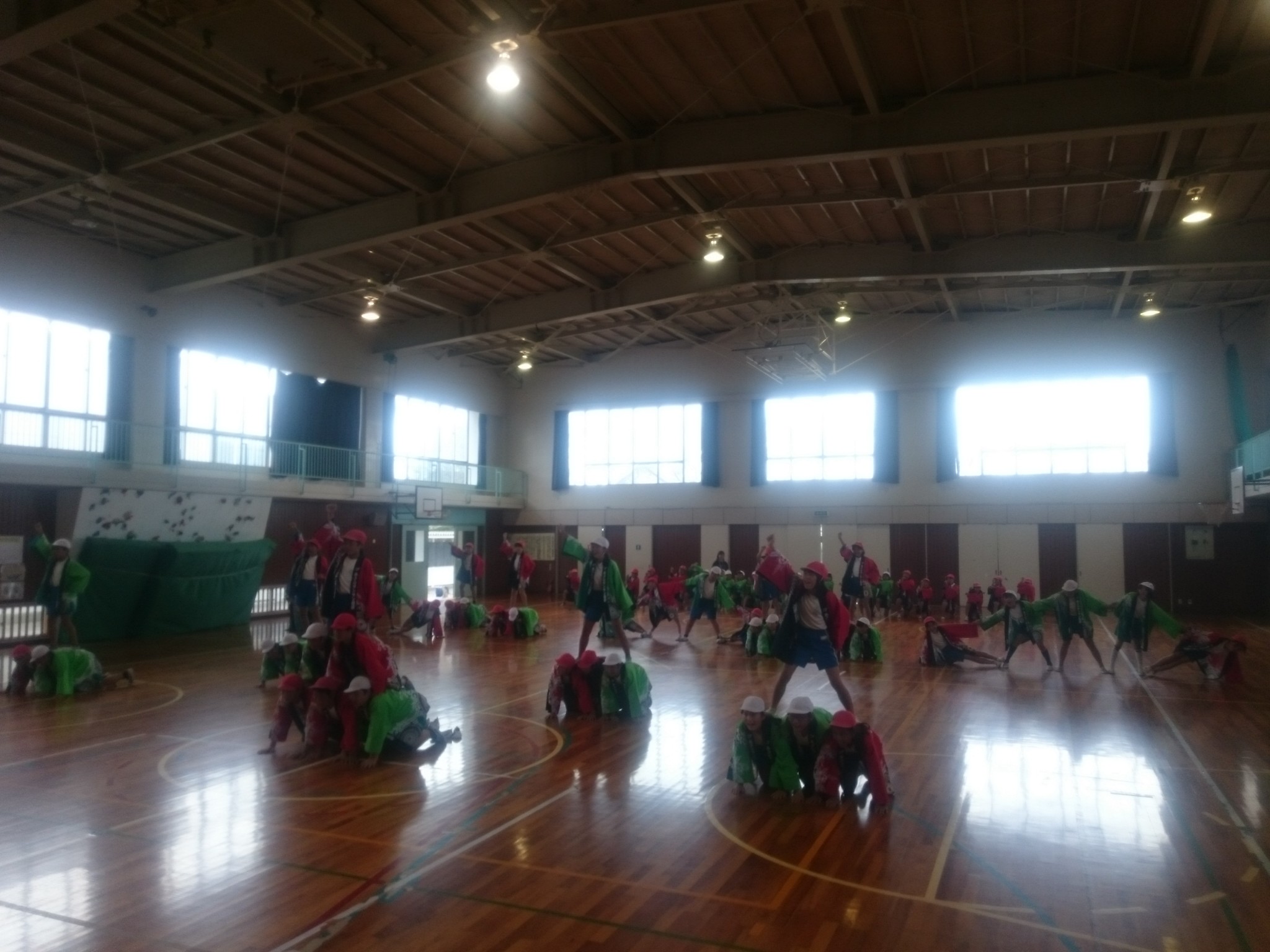 4・5・6年生のよさこいソーランも完成間近になりました。今日は、初めてハッピを着て踊ってみました!やはり、格好が揃うとよりカッコよく見えます(*^.^*)踊りにも気合いが入るのかな??