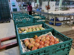 JAの選果場では、ベルトコンベアーで野菜が運ばれ箱詰めされる様子や、糖度をセンサーで測定するこ様子を見学しました。まるで、野菜の工場です!子供たちは、説明も真剣に聞いていました。