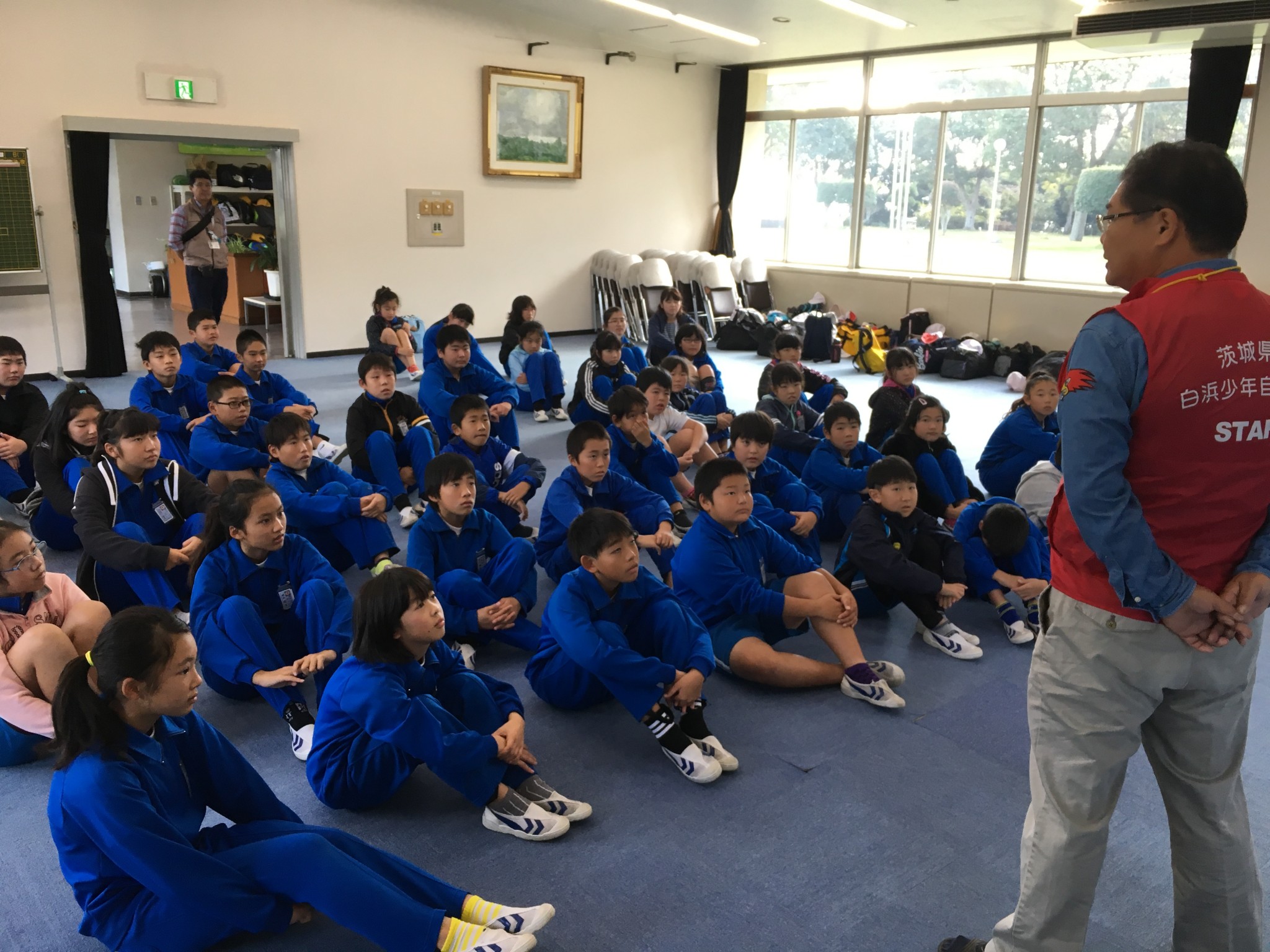 白浜少年自然の家に到着しました。入所式も終わり、これから焼杉体験です!