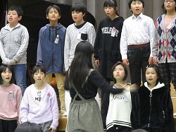 5・6年生が音楽祭に参加しました。これまで毎朝の練習を積み重ねてきました。音楽の時間には、今回 審査員を務めたK保育園のK先生を3回お招きして歌唱力の向上にも努めてきました。本番では、練習の成果を発揮して元気いっぱいに上手に歌うことができました。他の学校の先生からもお褒めの言葉をいただきました。伴奏を務めたS.Hさん、S.Hさんは、本番ぎりぎりまで練習に励み、上手に演奏することができました。指揮者のO.Sさん、S.Mさんは、みんなの歌をリードして、立派に指揮することができました。児童は、これまでの練習を通して多くのことを学ぶことができました。この経験をこれからの生活にも生かしていってほしいと思います。
