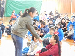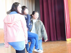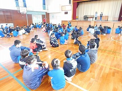 後半は、児童会が考えたジェスチャーゲーム「これは何でしょう?」です。児童会の子供たちが演じるパフォーマンスで楽しいひと時を過ごしました。