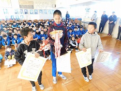 鉾田マラソンとバスケットボール少年団の表彰も行いました。学校の外でも旭南小学校の児童たちは がんばっていますね!