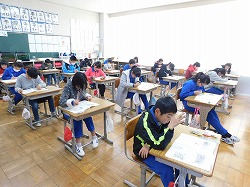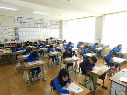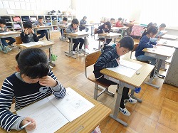昨日と今日の2日間、3年生以上は「茨城県学力診断のためのテスト」を行いました。これまでの学習の定着をみるテストです。みんな真剣な表情で問題を解いてました。結果については、集計や分析をした後に本人に返しますので、ご家庭でも確認してください。