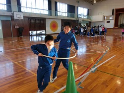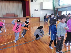3連休後ですが、南小は欠席0の日が59日となりました。今朝は児童朝会、児童会が考えたゲームは、「この人は誰でしょう?」と「縦割り班対抗リレー」でした。冷蔵庫のような体育館でしたが、大型ストーブの威力で寒さを感じず楽しむことができました。