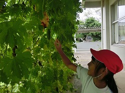 図書室の南側に作ったツルレイシ(ゴーヤ)のカーテンには、まだまだたくさんの実(ゴーヤ)がなっています。お好きな方は申し出て下さいね。(^o^)