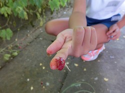 「わっ! 指が真っ赤! ケガしたの?!」
