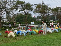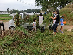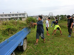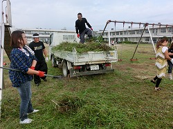 また、4年生以上の子供たちも参加しました。花壇の草取りを終えたあとは、保護者にまじって草を集めたり、トラックに積んだりしました。