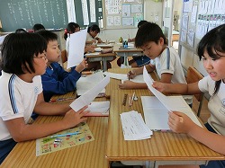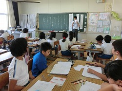 O先生の指導を受けながら、子供たちはしっかりと「自分なりの朗読」をするために、学習していました。授業の終わりには、アドバイスを受けて、さらに自分で朗読を練習する姿も見られました。O先生も、子供たちも、がんばっていますね。拍手、拍手!! (^_-)