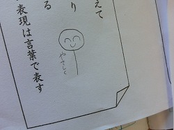 おお! 顔記号です。こんな記号は教科書の例にはありません。どんな工夫なのかと思ったら、