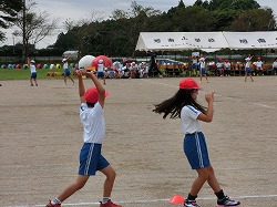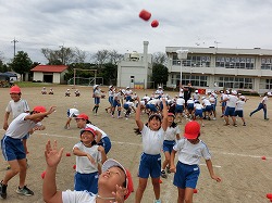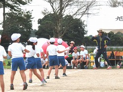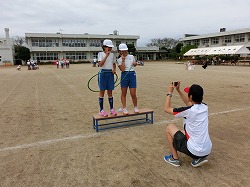 ▲こちらは、低学年のダンス「妖怪ウォッチ」。今年の流行ダンスです。 ……おっと、遠くに何だか、怪しい動き?