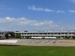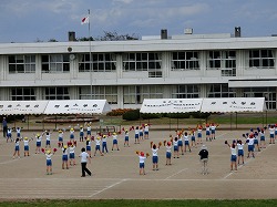 青空の下で、「無観客練習」です。 ……って、当たり前ですね。(>_<) 練習しているのは1~3年生の「妖怪体操☆南」。今日は、バンダナをしたり、手にキラキラの「ウォッチッチ」(? よくわかりませんが、これは3年担任のH先生のネーミングですって(^o^)) を付けたりと、本番さながらです。 ……え? よく見えない? アップしてほしい? って?
