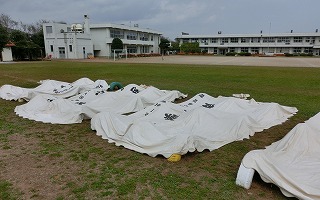 運動会の閉会式ぐらいからポツポツと小雨が降り出してしまいました。あと少しだったのに、と惜しむ声が上がりました。というのも、テントがぬれてしまったからです。「とりあえず立てておくわけにもいかないから、保護者の協力をもらってたたんでしまおう」と、片付けておきました。