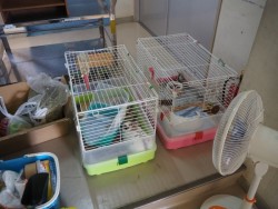 8月11日(水)職員が花壇の整備を行ってくれました。うさぎは,涼しい場所へ引っ越しました。大風にもまけず,ポップコーン用のとうもろこしも順調です。