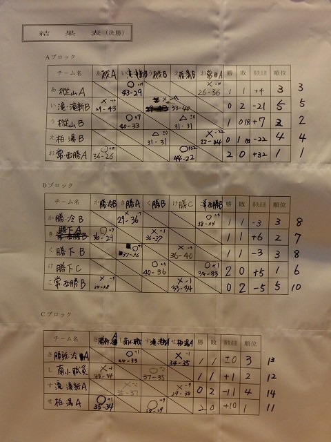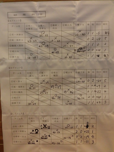 ▼ リーグ戦の対戦結果はこちら。写真をクリックすると拡大します。(^-^)