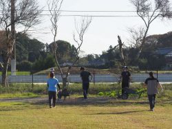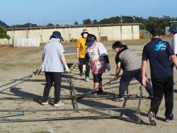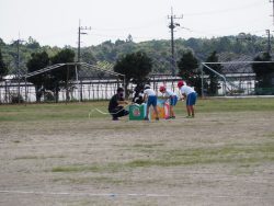 放課後,職員で,本部テント設置,グランドライン引き,入退場門固定作業を実施しました。