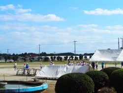 昼休みを使って,6年生が地区対抗リレーの練習を自主的に行っています。