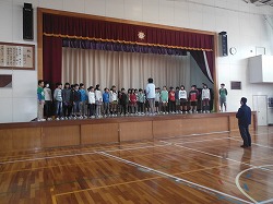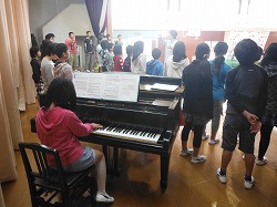 同じ体育館では5,6年生が音楽祭に向けて、舞台の並び方を含めて練習しています。