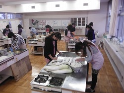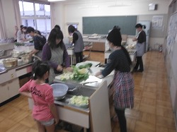 本日の午後4時から、家庭科室で、明日の「南っ子まつり」の豚汁の食材を、PTAの学年委員さん方が準備してくださいました。食材ごとに分担しててきぱきと作業をすすめていました。さすがです!(^o^) 明日の豚汁がとても楽しみになってきました。大鍋は400人分ぐらいできると言いますから、おかわりもOKでしょうね。学年委員さん方、ありがとうございましたっ! m(_ _)m