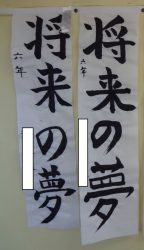 ・校内書き初め会を行いました。体育館で一文字一文字丁寧に集中して書いていました。