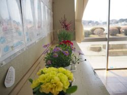 教室にあるきれいな花々も児童の登校を待ち望んでいるようです。