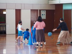 運動場では1年生や3年生が体育においてボール運動を行いました。