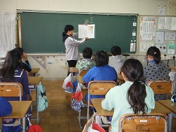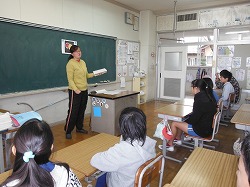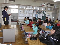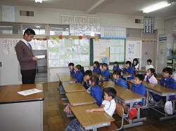 ▼ 3年生は教頭先生。「にじいろさかな」です。