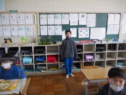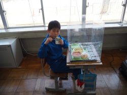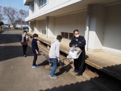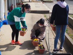 飼育環境委員会がプランターを運搬し設置する活動を行っています。